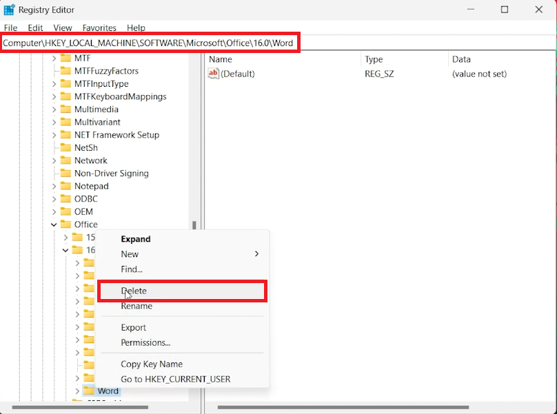 Word, right-click on it, and chooseDeleteto remove it from the registry.